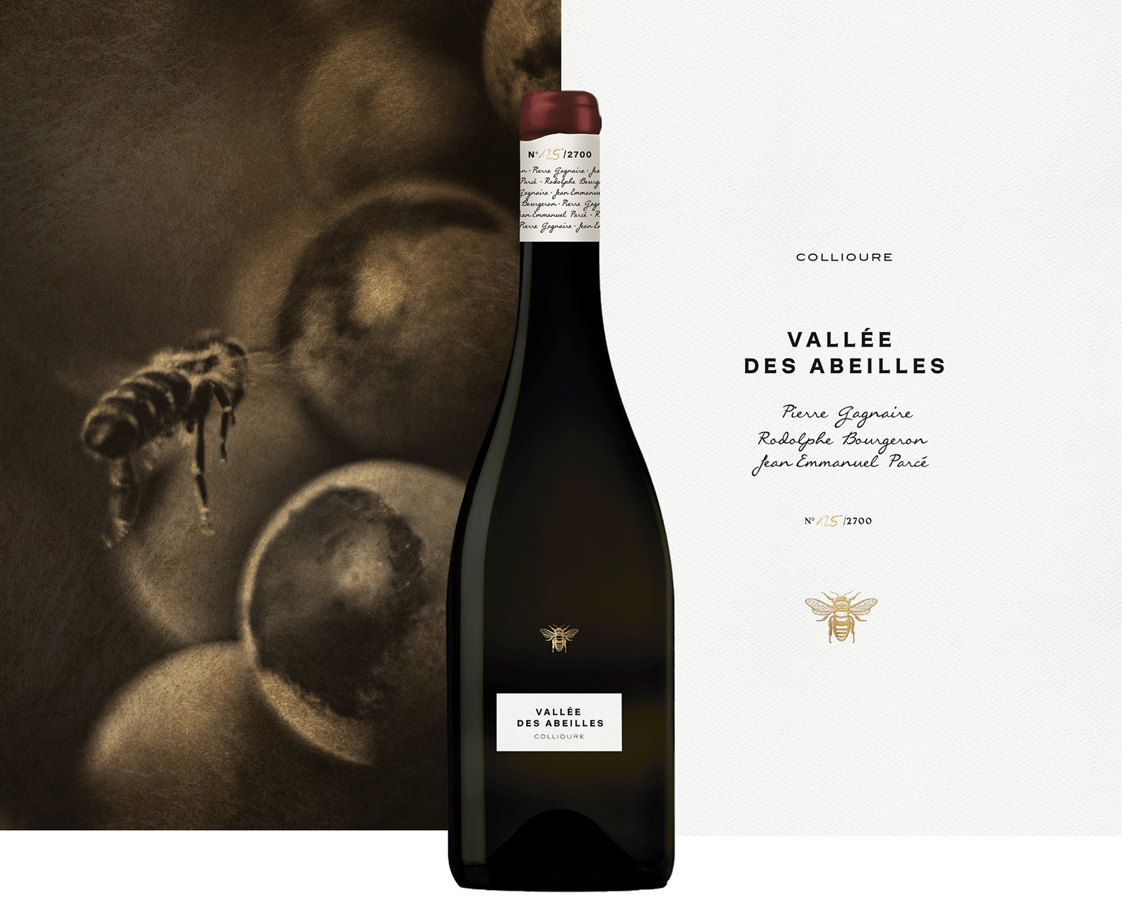 L’abeille, emblème discret et précieux, comme une signature. Elle incarne la vie, l’équilibre, la rigueur du geste et relie naturellement le domaine à son environnement.